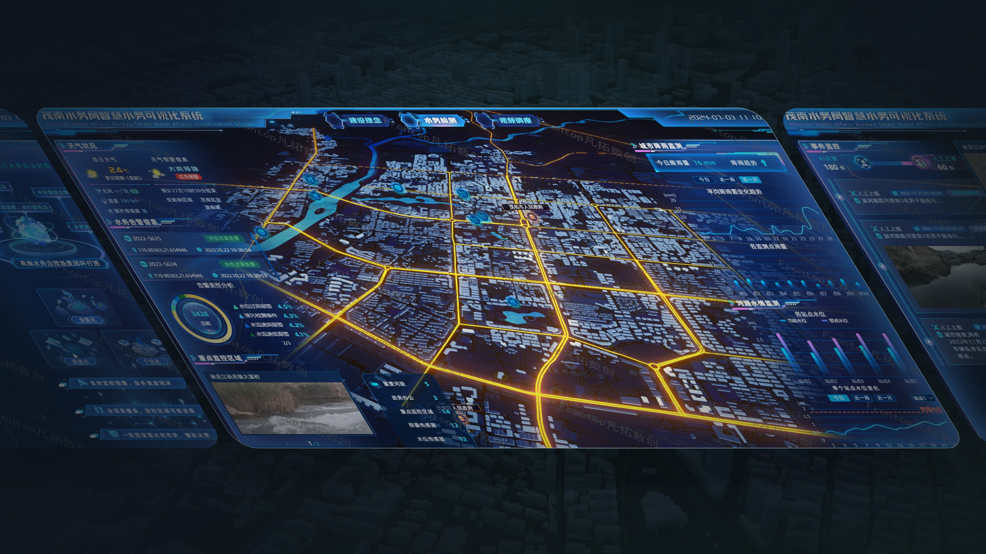 實現水雨情監(jiān)測、城市排水分析、內澇報警、降水模擬、隱患排查,推進城市水務數字孿生建設